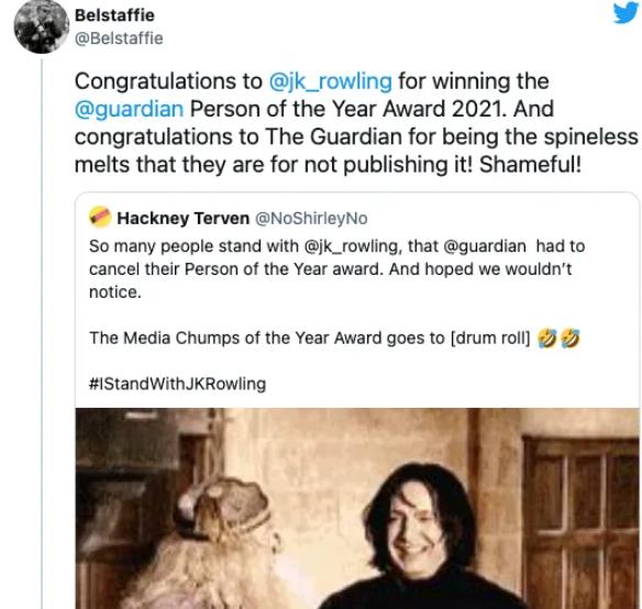 导致网民大骂卫报,并称罗琳是当之无愧的年度人物。