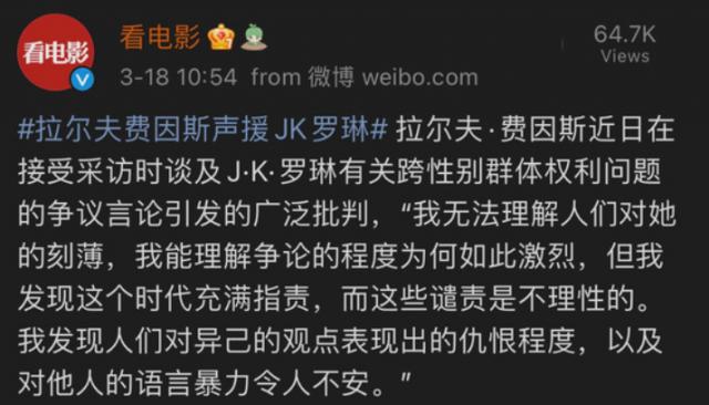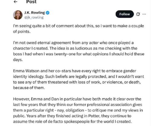 那么现在,罗琳的女权立场就是原罪,她说什么都不重要了。