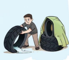 3.预防轮胎积水。应将轮胎存放在室内或避雨的场所。如要堆放室外,应用防雨布严密遮盖,注意避免防雨布积水。对悬挂的废弃轮胎,应在轮胎底部打孔,使积水顺畅流出。