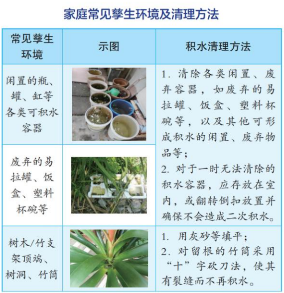 1.清除卫生死角及各类垃圾。特别是清除各类闲置、废弃容器(瓶、罐、缸、易拉罐、饭盒、塑料杯碗等)及其他可形成积水的闲置、废弃物品。