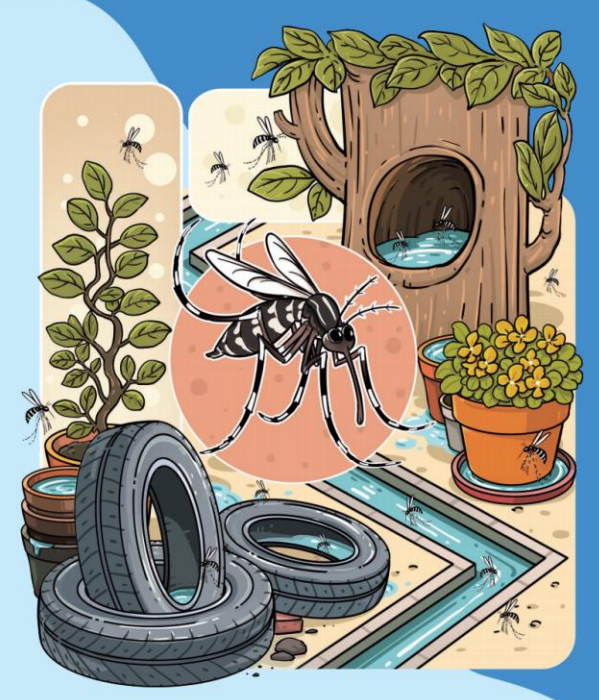 雌性白纹伊蚊在水体中产卵,而后的幼虫和蛹两个生长阶段也必须在水中才能发育、生长,这些水体即为孳生地。因此,清除白纹伊蚊孳生地是防蚊灭蚊的根本措施,而清理孳生地的关键在于查找和清理各种积水。